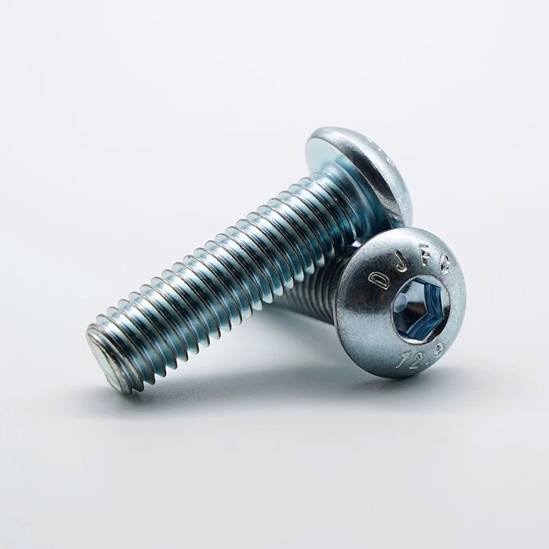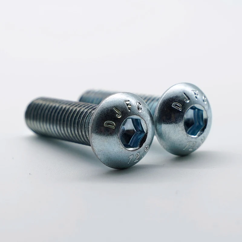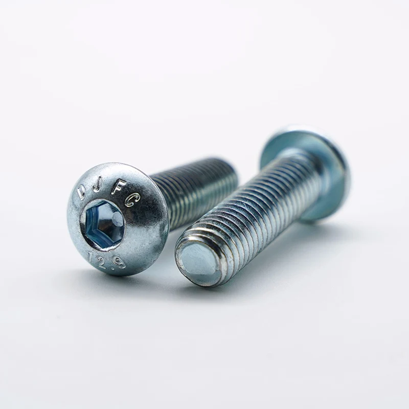 Ang proseso ng electro galvanizing na ginamit para sa galvanized hex socket button head screws ay upang tumpak na kontrolin ang pag -aalis ng layer ng zinc sa pamamagitan ng electric kasalukuyang sa mababang temperatura upang matiyak ang pantay na patong at makinis na ibabaw. Ito ay may kaunting epekto sa mga mekanikal na katangian ng 12.9 grade high-lakas na substrate, na epektibong maiwasan ang panganib ng yakap ng hydrogen. Hindi nito binabago ang laki ng workpiece at partikular na angkop para sa pagpupulong ng katumpakan at kasunod na mga pangangailangan sa pagpipinta. Kung ikukumpara sa hot-dip galvanizing, ang electro galvanizing ay may mas pinong hitsura, mas tumpak na dimensional control, at mas angkop para sa mga pamantayang pang-industriya. Ang grade 12.9 ay kumakatawan sa isang ultra-mataas na grade grade, at ang panghuli nitong lakas ng tensile at lakas ng ani ay lumampas sa mga ordinaryong carbon steel o hindi kinakalawang na asero na mga tornilyo. Kasabay nito, binibigyan nito ang mga turnilyo na mahusay na makunat, paggugupit at pagkapagod na pagtutol, at partikular na angkop para sa malupit na mga kondisyon sa pagtatrabaho na may mabibigat na naglo -load, mga epekto o patuloy na panginginig ng boses. Mayroon itong makabuluhang pakinabang sa mga aplikasyon na nangangailangan ng mataas na preload upang matiyak ang pagiging maaasahan ng koneksyon.